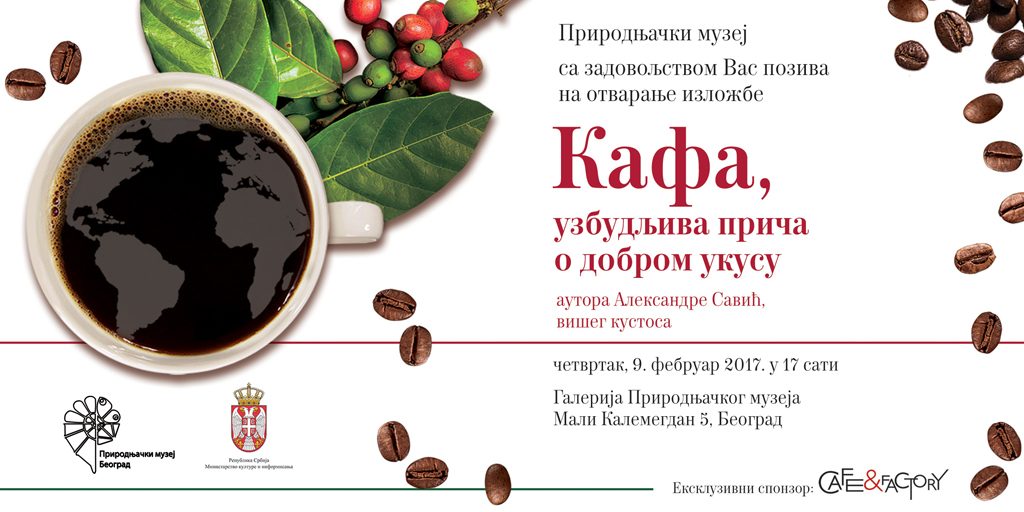Na izložbi, koja će biti postavljena u Prirodnjačkom muzeju, od 9. februara, kada je otvaranje, do maja, biće predstavljene sadnice biljke kafa (Coffea arabica L.), modeli ploda i semena kafe, uzorci kafe sa ekskluzivnih plantaža širom sveta (Etiopija, Jemen, Kamerun, Gvatemala, Burundi, Ekvador, Meksiko, Brazil, Indija, Nepal, Vijetnam, Papua Nova Gvineja, Honduras, Tanzanija itd.), kao i čuvena i veoma skupa kafa Blue Mountain koja se uzgaja na Jamajci. Izložbu prati i priča o istoriji kafe i kafedžinica u svetu, o proizvodnji i preradi kafe, kao i o kofeinu, „legalnoj drogi”.