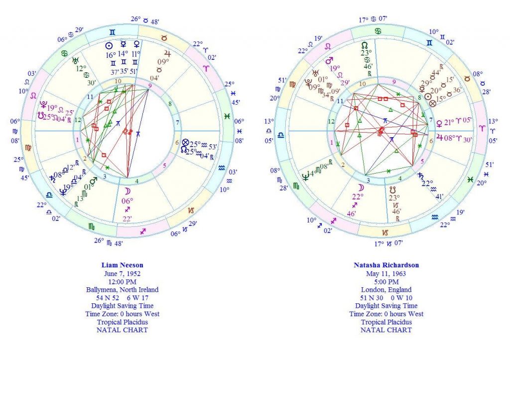 Nemamo vreme rođenja Lijama Nisona, ali imamo Nataše Ričardson, tako da ipak možemo uporediti njihove horoskope.