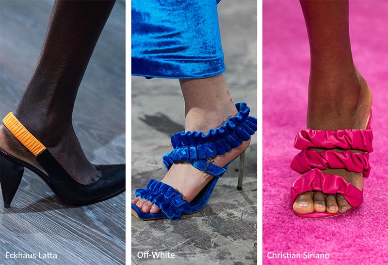 Nabrane cipele, kkao sa karnerima, su verovatno bile najsuptilniji od trendova cipela za jesen 2020. Štikle su bile ukrašene nabranim trakama u vidu karnera, što im je dalo elastičan osećaj i dodalo teksturu.