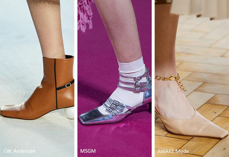 Iako je možda glavni dizajn kutije za prste u trendovima obuće za jesen – zimu 2020/21 bio špicasti, i dalje je bilo prilično opcija kvadratnih vrhova / pačji kljun koje će vam olakšati izbor ako ste takav par kupili za proleće.