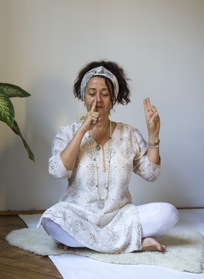 Savijte prste desne šake u pesnicu, ispružite kažiprst i njime zatvorite desnu nozdrvu.