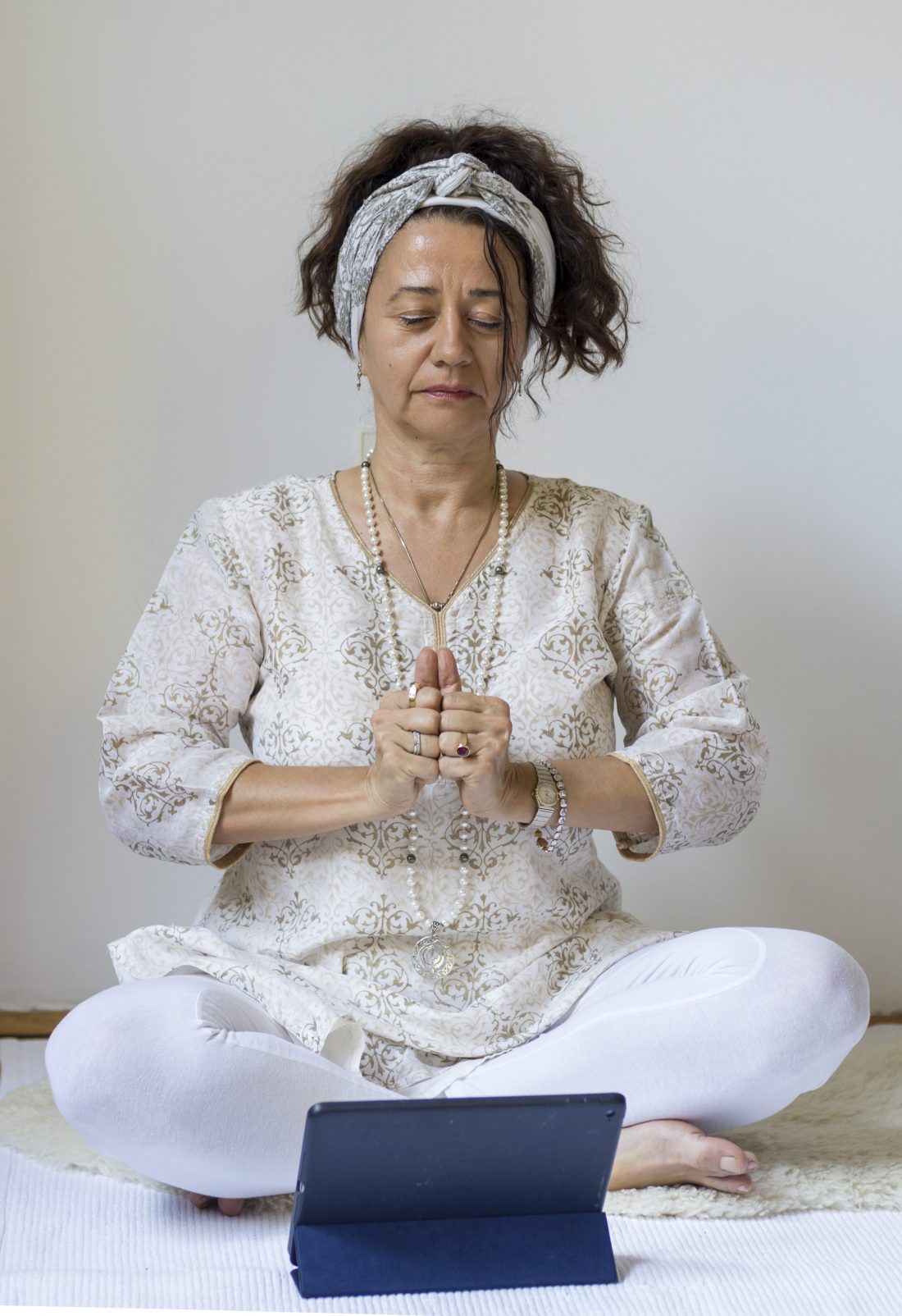 Sedite u turski sed, stavite ruke u molitveni položaj i otpevajte tri puta mantru Ong Namo Guru Dev Namo (Ong je Tvorac, onaj koji nas je stvorio, Namo je pozdravljanje sa poštovanjem).