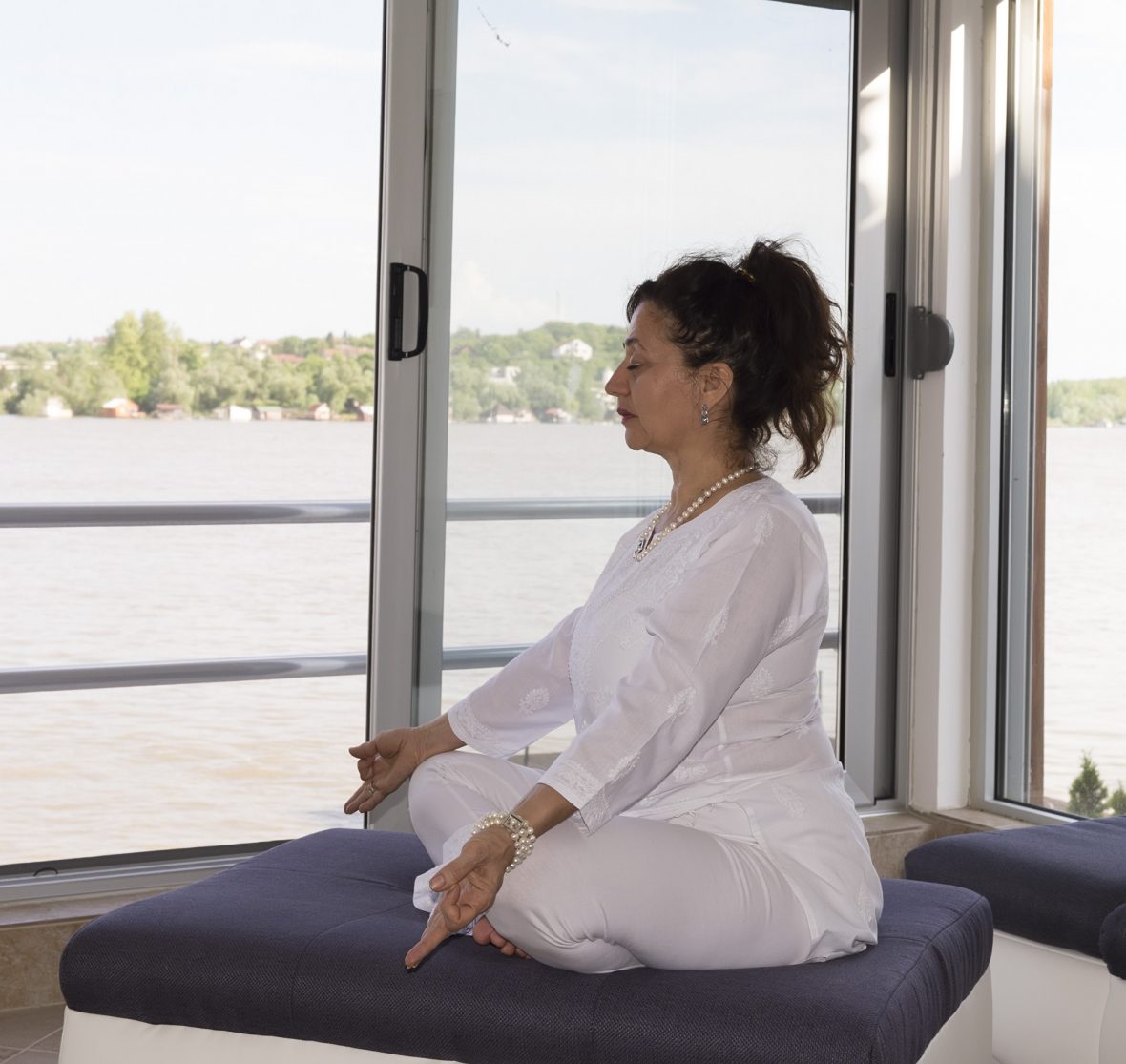 Sedite u turski sed, stavite ruke u molitveni i recite Sat Nam.