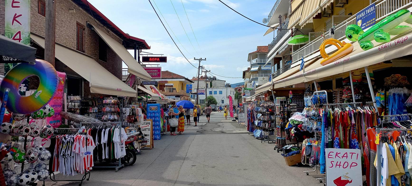 Duž pešačke zone u glavnom delu sela, tiskaju se jedan uz drugi restorani, apoteke, lekarske ordinacije, prodavnice uglavnom jeftine i još jeftinije robe, obično sumnjivog kvaliteta, mada oko sokolovo može za sebe da prigrabi i dobre espadrile za sedam evra i letnju haljinicu bez leđa za cela tri. Udobno i finog kvaliteta, pa vi vidite.