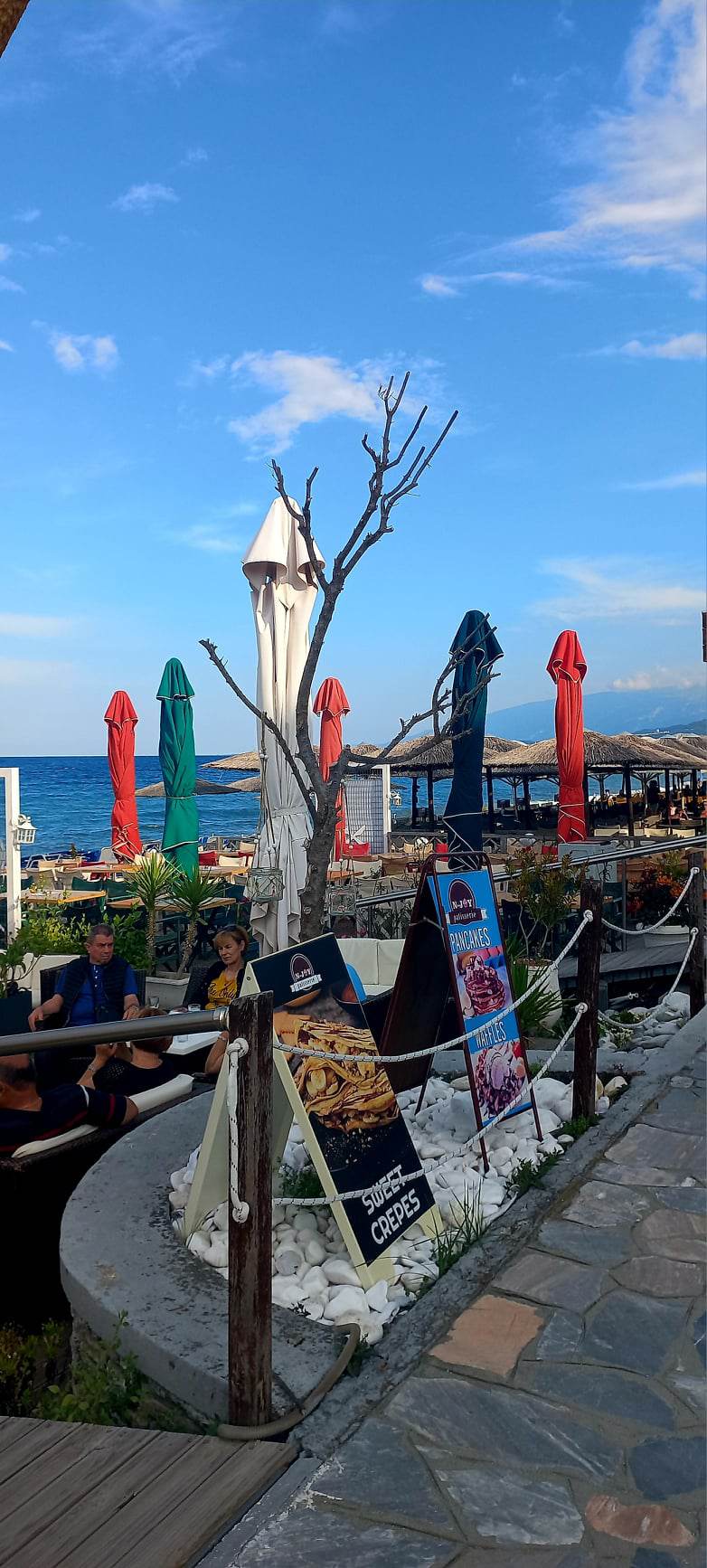 Samo da vam kažem, iz gornjeg dela sela pruža se divan i sve divniji, kako se penjete uzbrdo, pogled na primorski deo mesta i sinje Egejsko more tako da ako ste motorizovani ili se ne libite da hodate uzbrdo – nizbrdo peške, možete se smestiti i boraviti bez ikakvih problema i u gornjem delu sela.