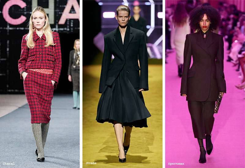 Ove jeseni, činilo se da je veliki naglasak na trodelnim odelima sa malo stila 60-ih. Odela sa mini suknjama takođe su u velikoj meri osvojili srca dizajnera, a Šanelova pista je prednjačila. Međutim, potreba za klasičnim i sofisticiranim odelima za modernu kancelarijsku radnicu nije bila ograničena samo na Nedelju mode u Parizu. Dizajneri u svim modnim prestonicama gravitirali su ovom elegantnom izgledu, a prednjačili su Tod’s, Sportmax i The Row.