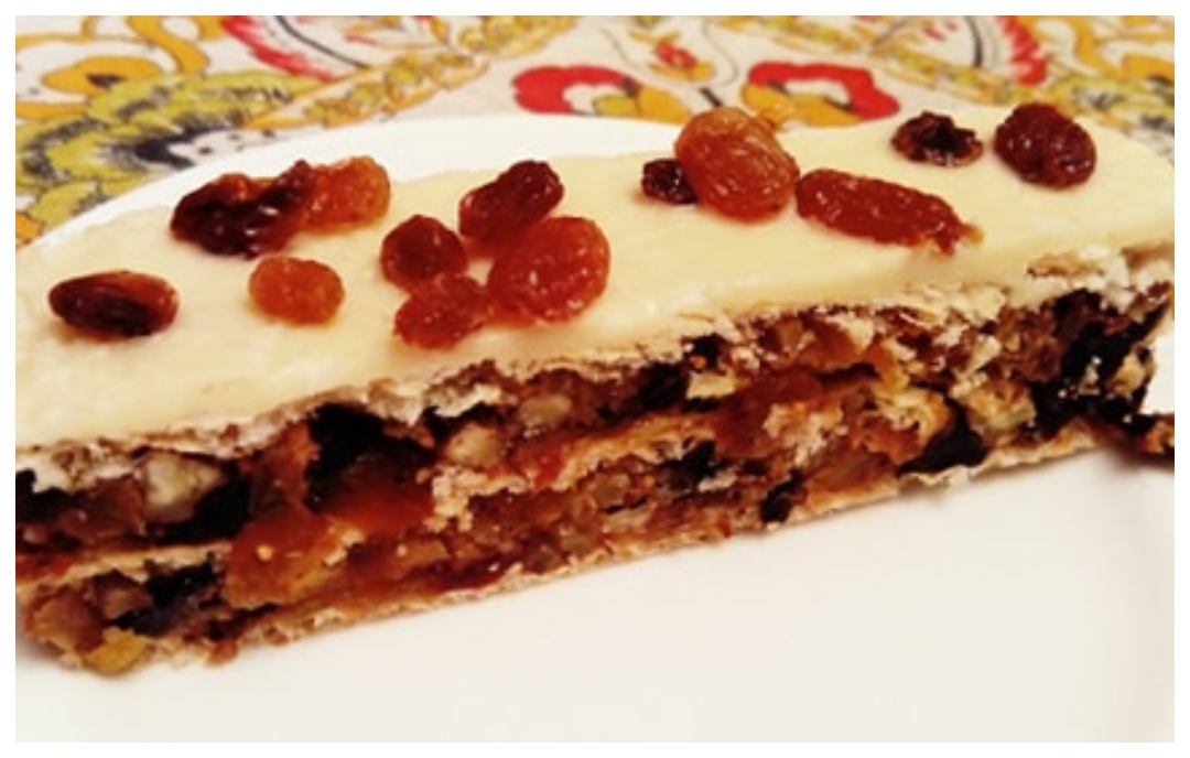 Sitno iseckajte suvo voće, prelijte ga sokom od pomorandže i ostavite da upije sok i ogrezne par sati. Potom, otopite na laganoj vatri med i puter zajedno, i dodajte suvo, seckano voće. Sve dobro izmešajte.