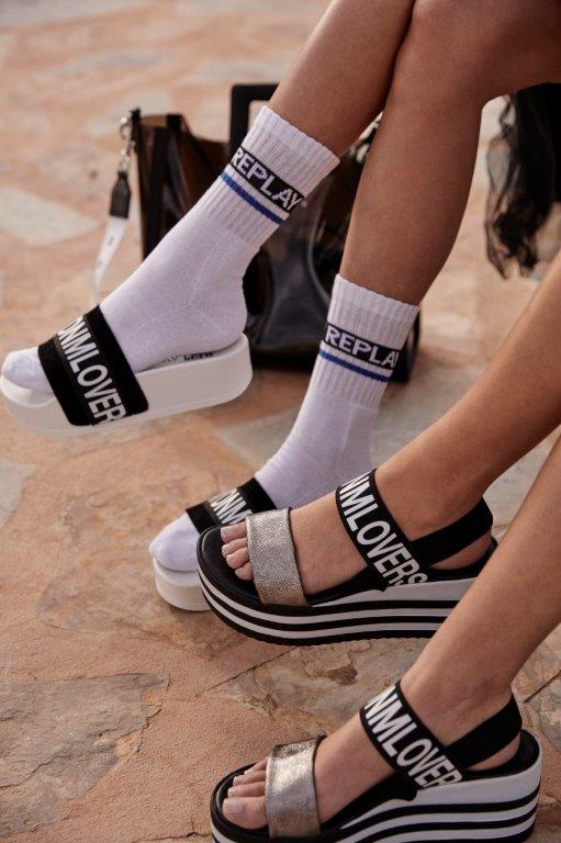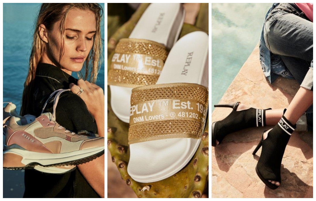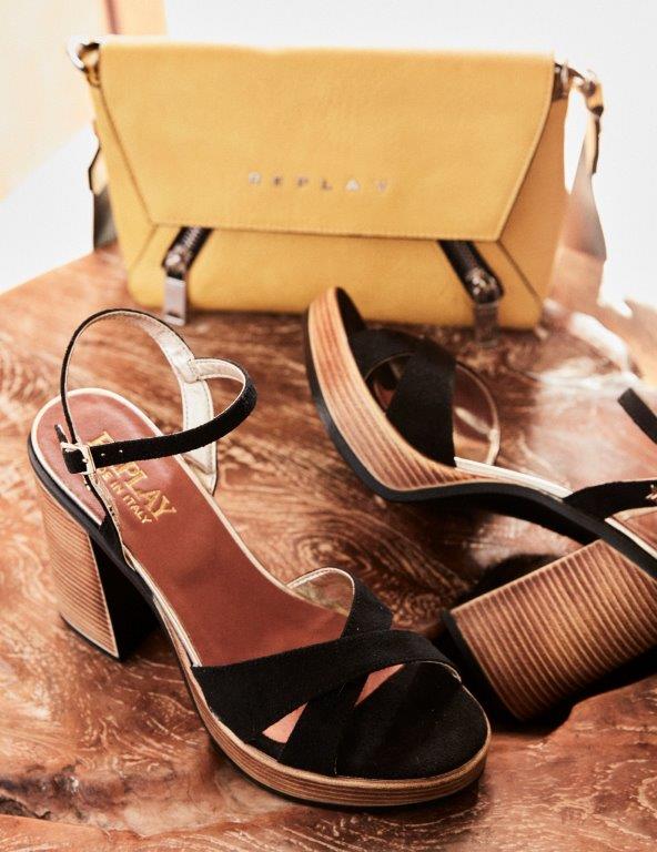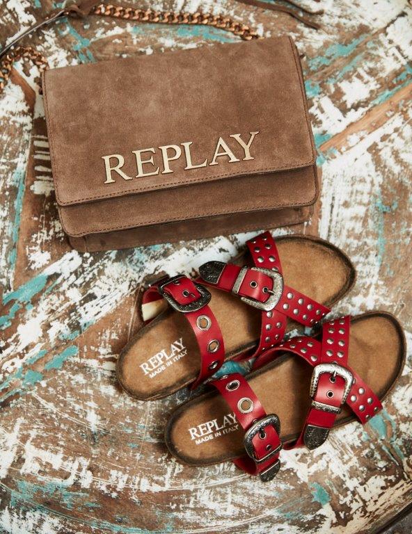 Replay nudi širok asortiman modela sa visokom potpeticom, od sofisticirane visoke štikle, preko drvenog stila 70-ih, do vrtoglavo tankih i atraktivnih stileto modela. U ponudi je i sportska linija sandala, čizama i drugih modela za ležernije večernje varijante.