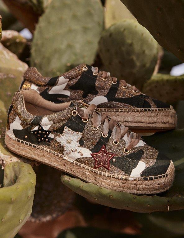 Linija odiše printovima, raznovrsnim šarama i bojama koje krase espadrile, papuče i patike koristeći orijentalni stil i kimono tkaninu. Svetlucavi saten čini jarke boje još življim i izuzetno upečatljivim. Bele pertle, aplikacije i fular naglašavaju siluete ovih modela, čineći ih modernim i mladalačkim.