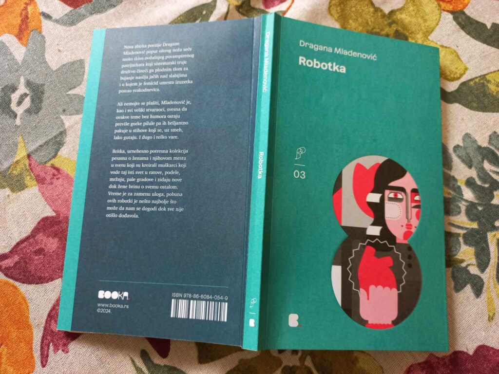 Dragana Mladenović ogoljava patrijarhalne obrasce koji su svuda oko nas, a nekad i u nama samima, prikazujući društvo u kojem se od žena očekuje da budu savršene supruge i majke, jake i ostvarene žene, ali da istovremeno budu i krotke, podatne i tihe. Njeno pesničko ja, njena robotka, međutim, ne uklapa se u to.