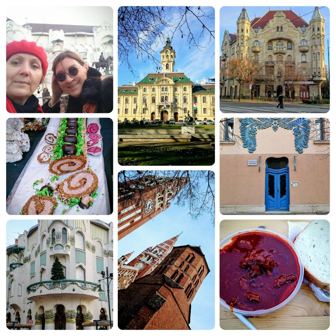 I uživala u tome blagodareći pre svega sjajnom društvu osobe koja je odlično podnela poprilično hodanje, zastajkivanje, slikanje, pipkanje, očarano divljenje izvanrednim detaljima karakterističnim za Secesiju, i spartansku odlučnost da se ne jede i ne pije dok se u svaki budžak ne zaviri. Prelep, sunčan iza decembar neobično topao dan, kao i veseli praznični dekor, dali su poseban kvalitet ukupnom utisku o Segedinu.