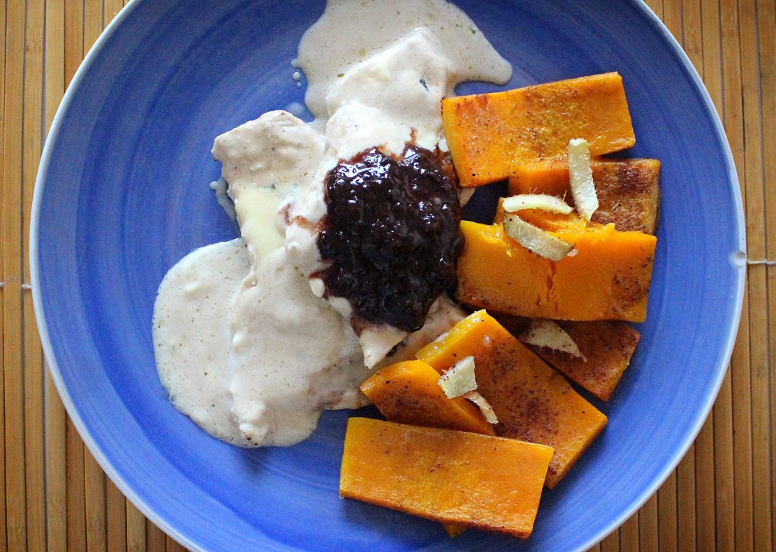 Bundeva je pečena u rerni, sa đumbriom, cimetom i malo muskatnog oraščića.