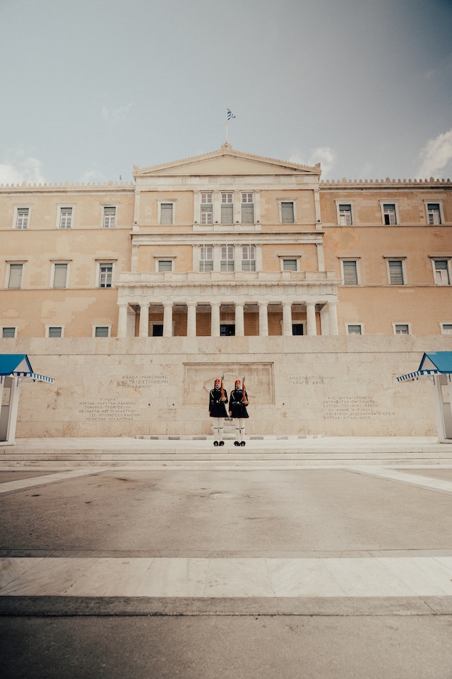 Sa jednog od njegovih ulaza izlazite ispred rezidencije predsednika Republike i premijera: pokušajte da posmatrate smenu straže kada se Euzoni, elitni pešadijski vojnici, ističu ne samo po odeći (plisirana suknja sa 400 nabora, već i sa belim naborima, sa svim turskim uskim godinama) cipele (šiljaste i sa pomponima).