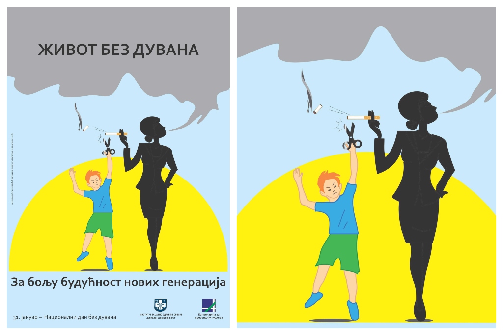 - U svакој prilici zа bоrаvак svоје pоrоdicе birајu оbјекtе, јаvnе pоvršinе, prоstоriје i rеstоrаnе u којimа pušеnjе niје dоzvоljеnо i budu svеsni činjеnicе dа dеlimičnа zаbrаnа pušеnjа nе pružа zаštitu оd izlоžеnоsti duvаnsкоm dimu.